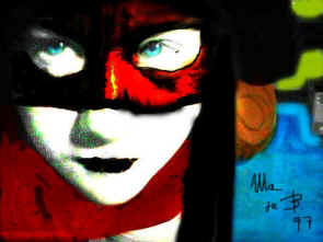 To dzieło nosi tytuł "Obca". Co Urszula chciała przez to powiedzieć? Ja Wam nie powiem. Jest to zabronione. Poza tym obraz to nie wiersz i nie musi nic mówić. Ważne, żeby wywoływał jakieś odczucia. I co wywołuje? Mam nadzieję. Ula uważa to maleństwo za swoje najlepsze dokonanie na komputerze. Może ma rację, może nie. Kto to wie? "Obca" istnieje w rzeczywistości i podobnie jak wielu bohaterów komiksów również ma swoje ukryte moce. Mieszka w Polsce, ma prawie dwadzieścia jeden lat. Na codzień nie nosi maski, pojawia się rzadko i mało kto w ogóle wie, że ona istnieje. |